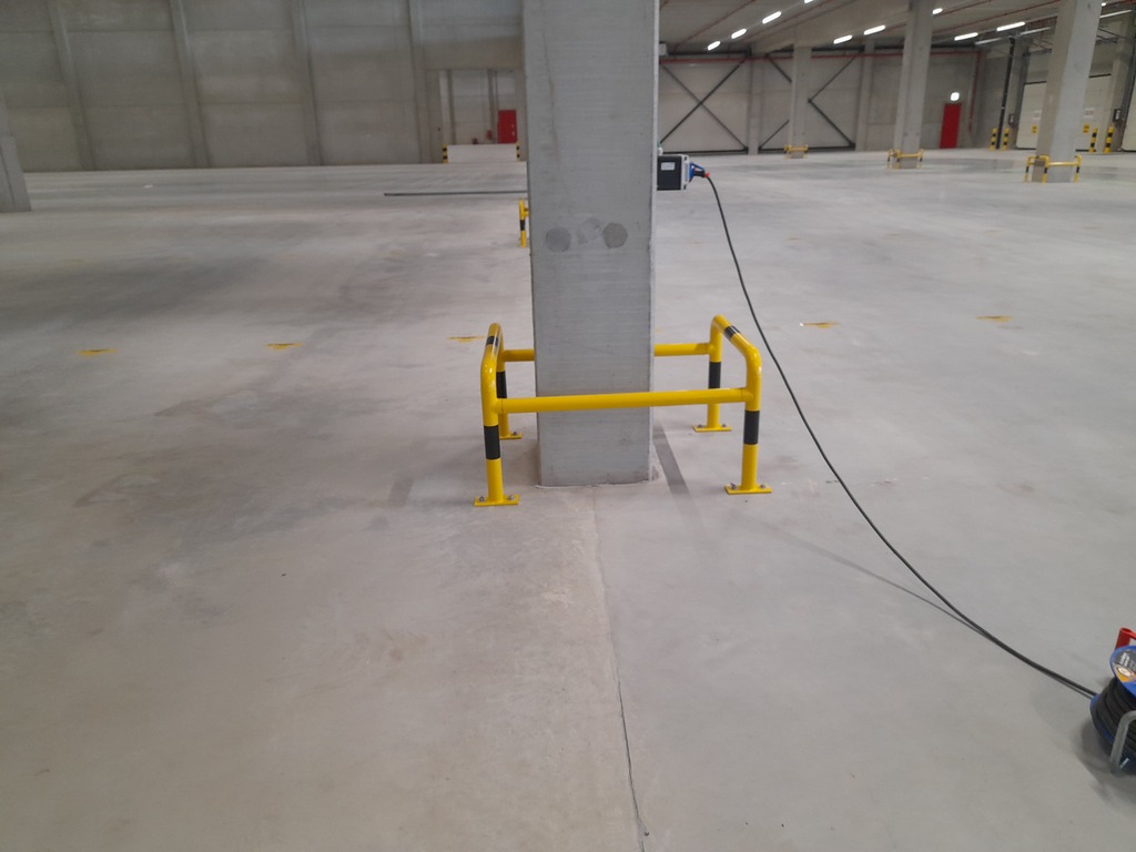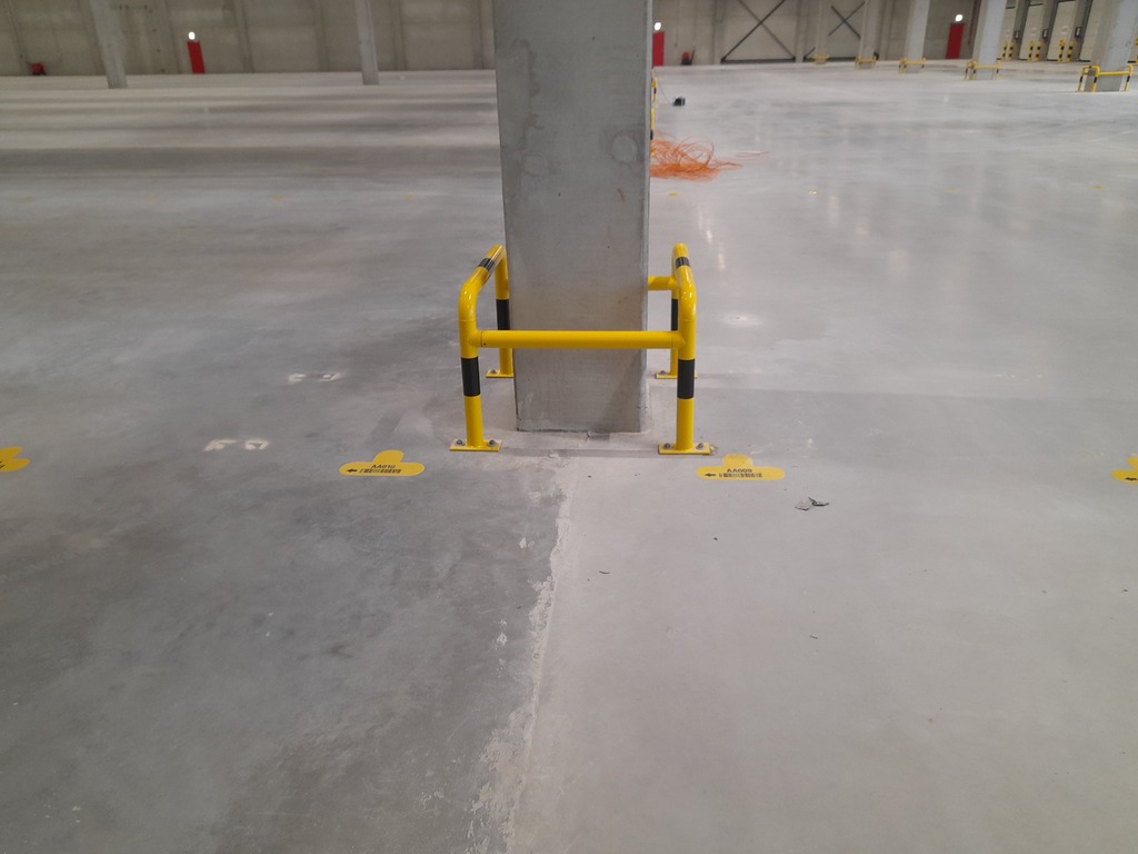 Kolombeschermer uit buis Ø60 mm. Afm: 500x500 mm. Hoog 600 mm. op voetplaat. Geel/Zwart (geleverd in 4 delen)